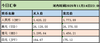 数据来源:越南外贸股份商业银行(vietcombarnk)仅供参考