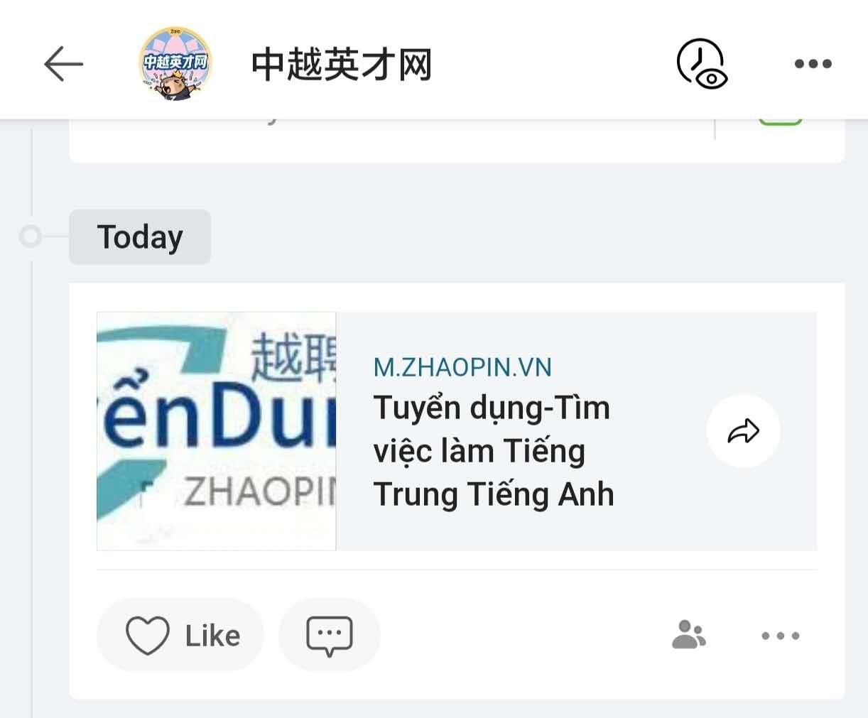 wZV中越英才网在zalo朋友圈直接发布网站连接,好友通过点击朋友圈信息到访网站。wZV中越英才网