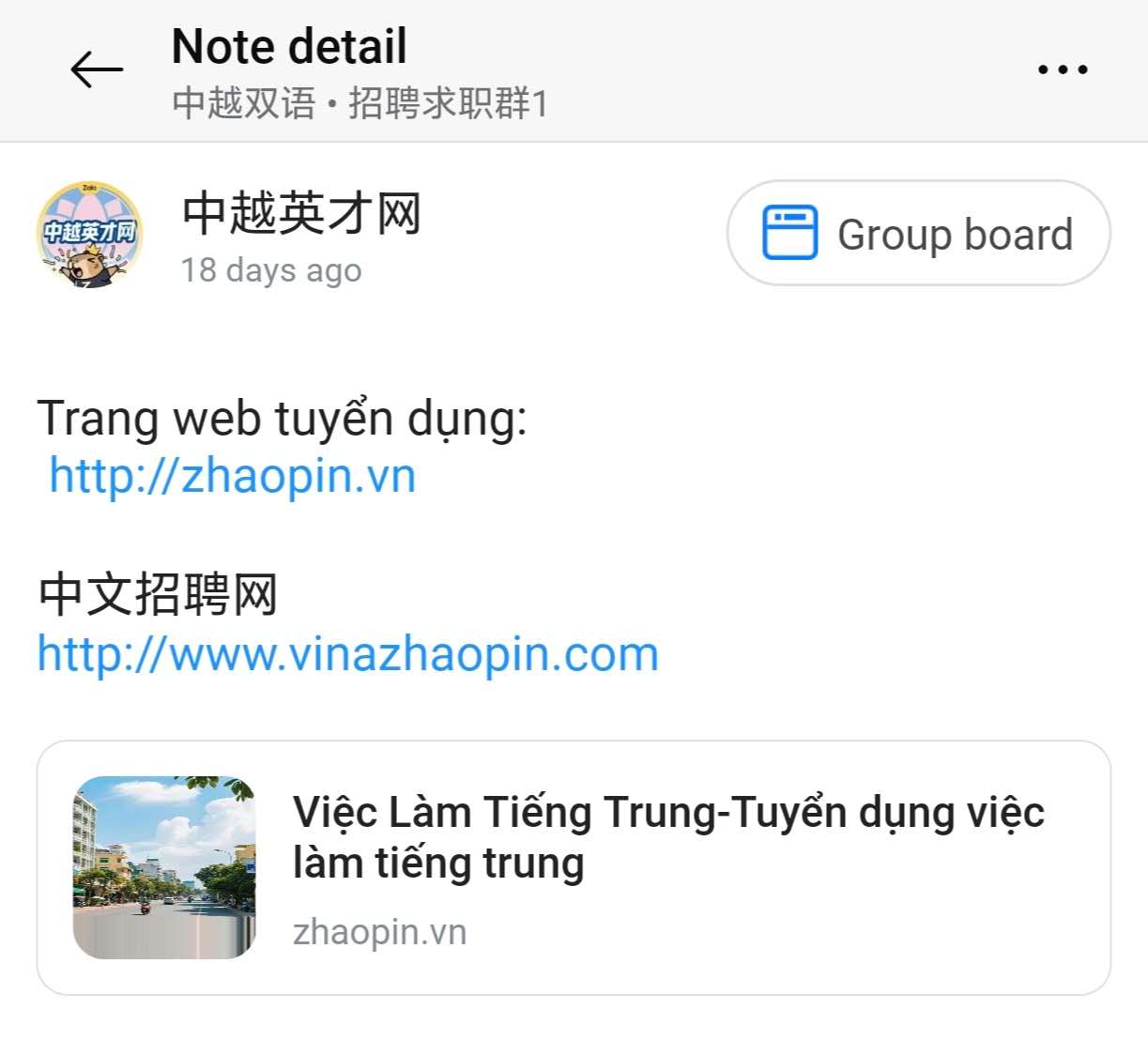 2.网站和zalo群及朋友圈无缝对接和引流wZV中越英才网在zalo群里设置NOTE网站连接,群成员可通过连接到访网站wZV中越英才网