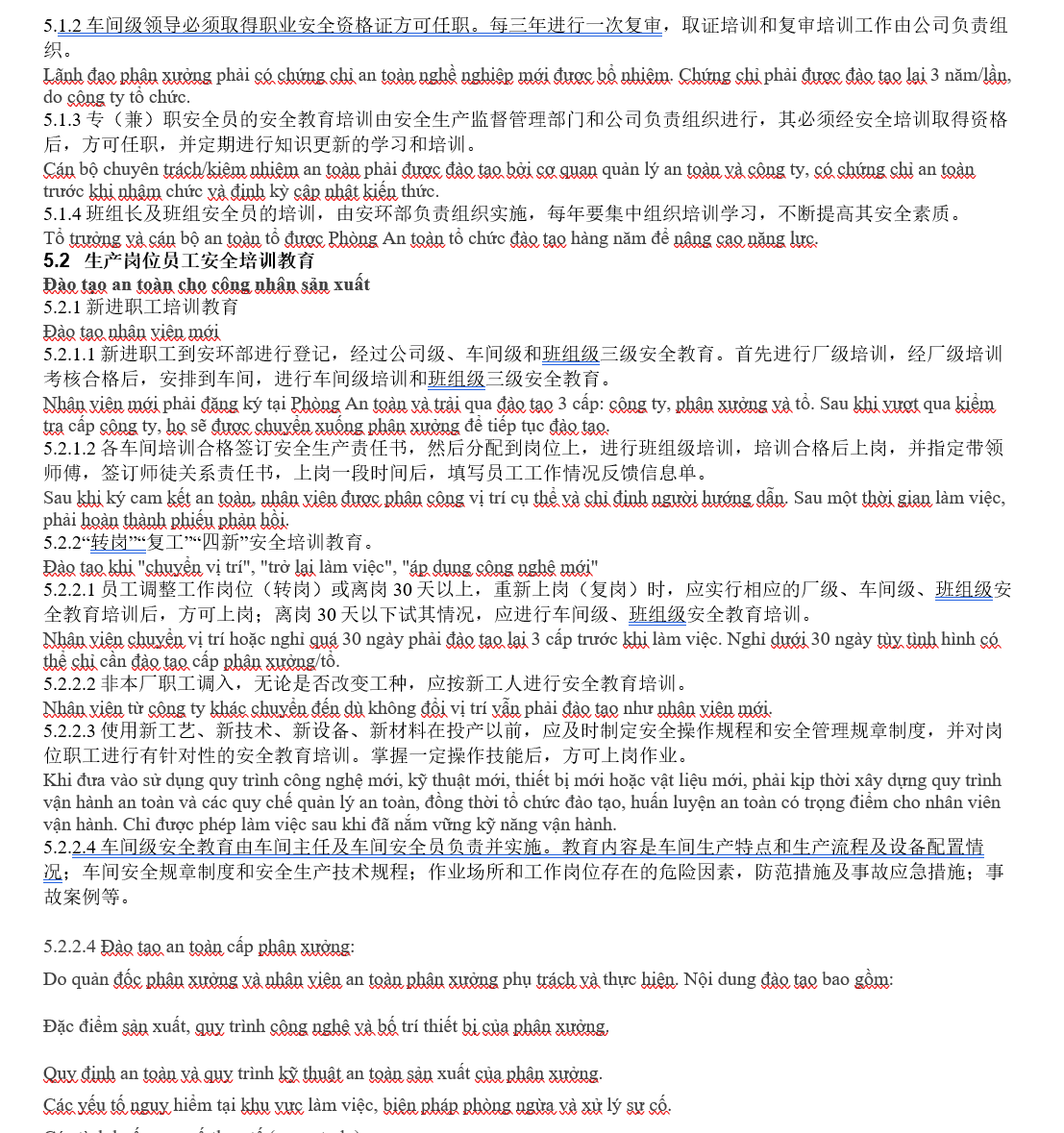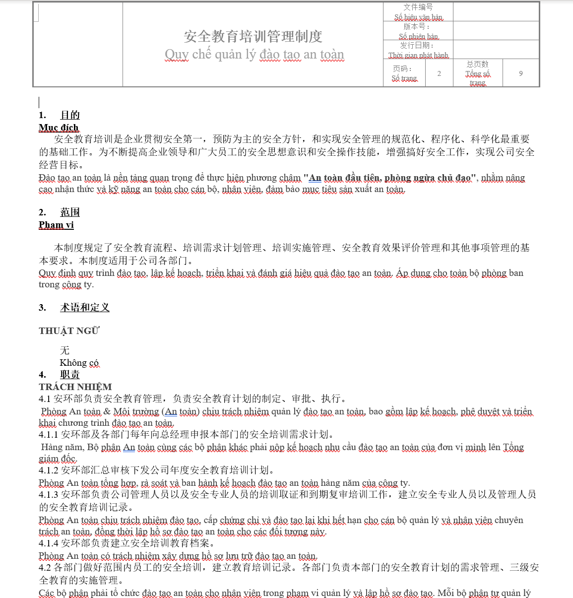 文件名称:越南安全教育培训管理制度中越双语版下载