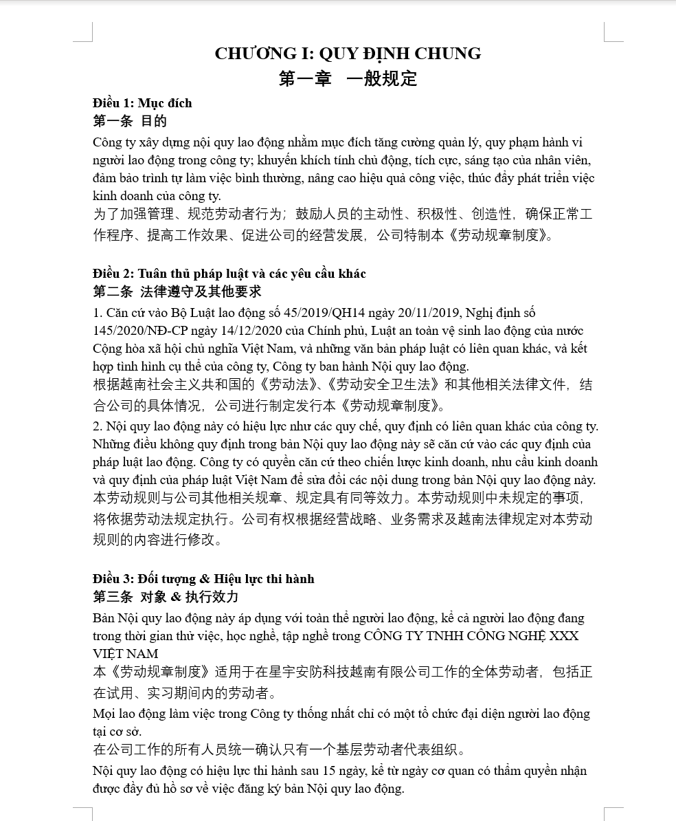 越南劳动内规2025年劳动局审批版中越双语51页下载