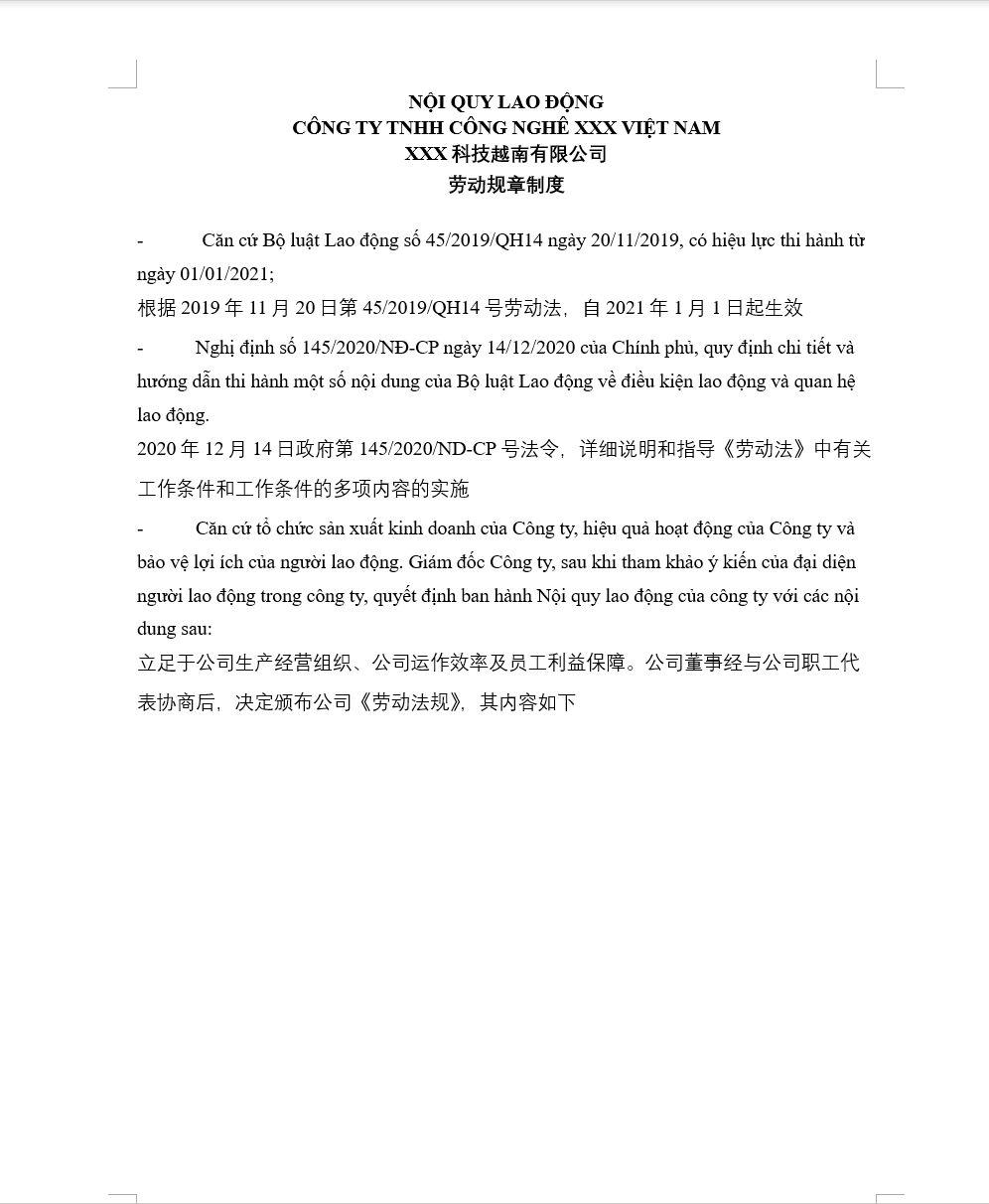 文件名称:越南劳动内规2025年劳动局审批版中越双语51页下载