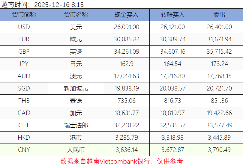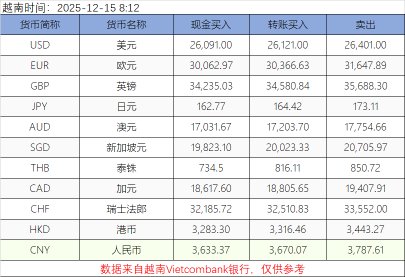 越南盾兑换人民币、美元汇率