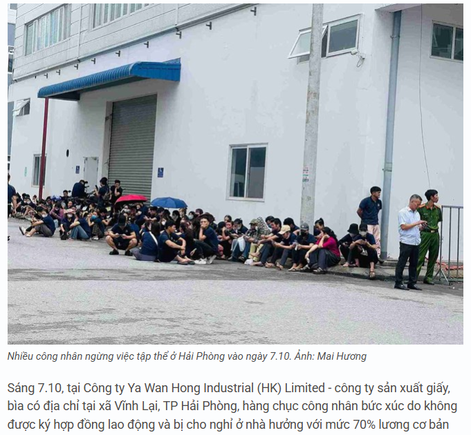近日,越南海防市一家中资企业陷入劳资纠纷漩涡。据越南劳工传媒报道,10月7日上午,位于海防市永赖乡的Ya Wan Hong实业(香港)有限公司发生集体停工事件,数十名工人因权益问题集体表达不满,引发当地政府高度重视。