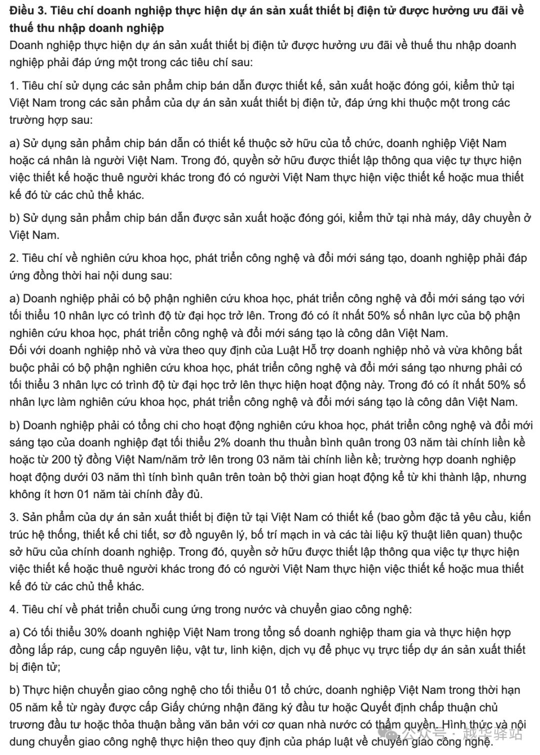 据越媒报道:越南科技部部长刚刚(2025年11月15日)发布了第33/2025/TT-BKHCN号通知,规定了实施电子设备制造项目的企业享受企业所得税优惠的条件。