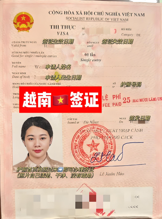 落地签批文:先在线申请“落地签批文”,抵达越南机场后,凭批文、表格等材料换取签证贴纸。